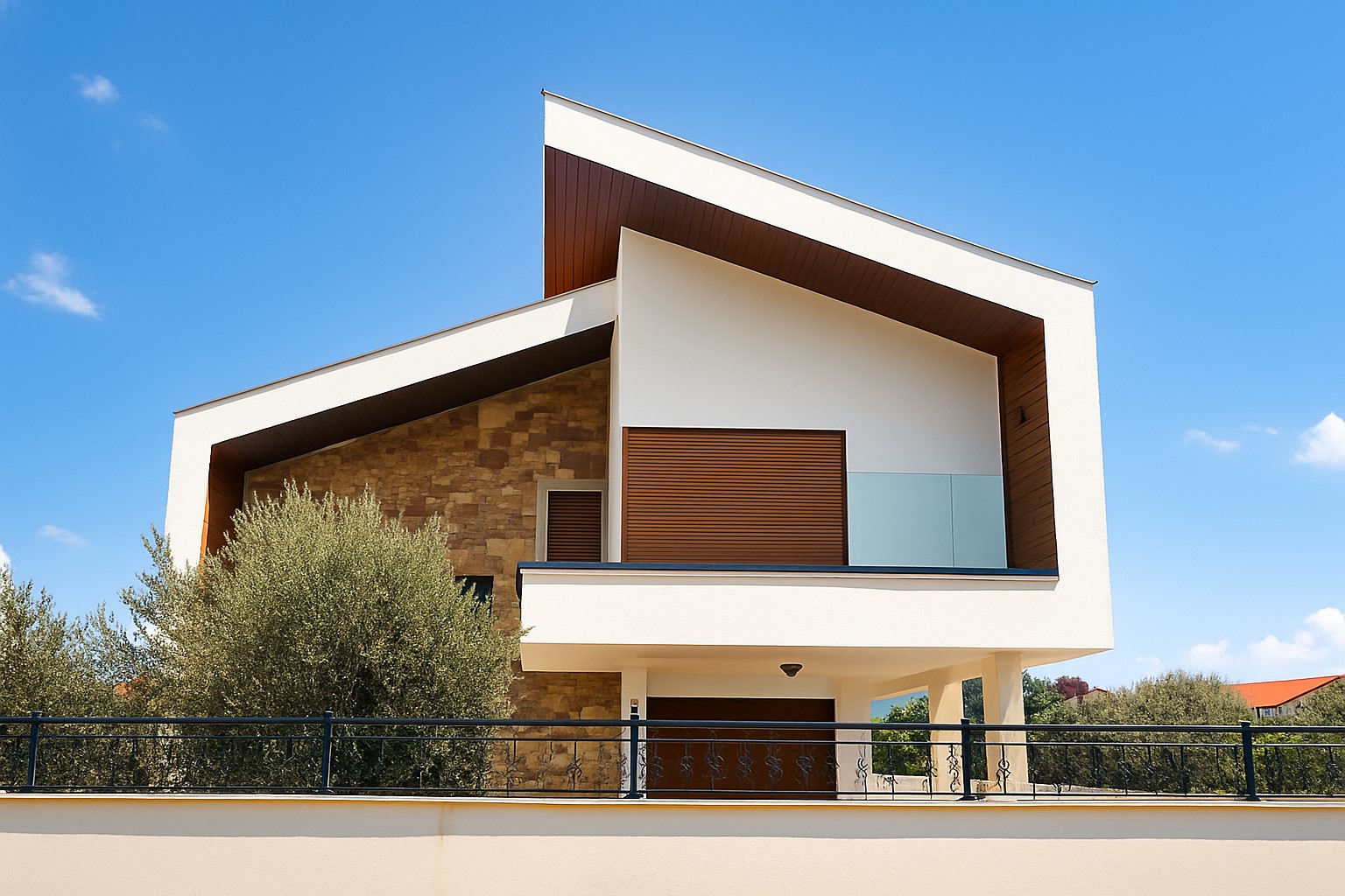 Milas-Ören’de yer alan konut yapısı, bölgede yer alan diğer yapılardan farklı bir mimari kurguya sahiptir. İki kat yüksekliğinde ve galeri boşluklu alt kütle, yatak odalarının yer aldığı üst kütle ile şaşırtmalı olarak bir araya gelmiştir. Bu yaklaşım, akdeniz mimarisinin geniş teras kullanımı ve güneş kontrolünde fayda sağlayarak, kullanıcı konforunu optimum seviyeye çıkarmıştır.